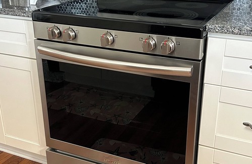 The kitchen is thoughtfully equiped with updated appliences and plenty of casserole dishes, baking sheets, cutting boards, etc.