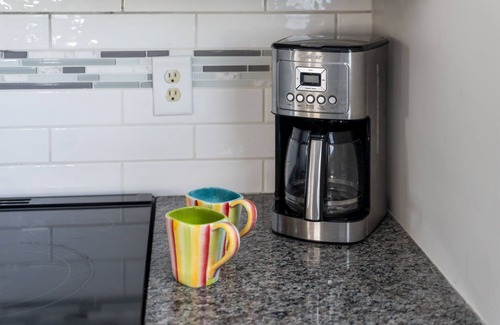 Fully stocked kitchen w/ blender, toaster, plenty of dishes, cookware & coffee cups