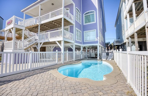 This luxury ocean front duplex located in the heart of Cherry Grove is perfect for your next family getaway. This 6 bedroom home sleeps 15 people and includes a private swimming pool, hot-tub, basketball court and more. This home is within walking distances to the Cherry Grove Pier, grocery store, ice cream shop, restaurants, beach bars, and more! Linens are included.