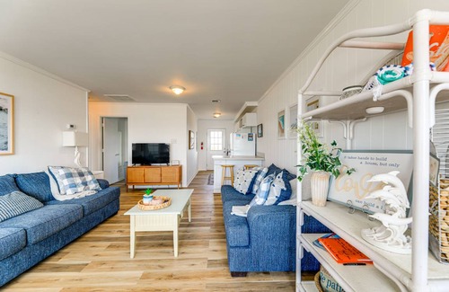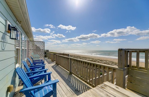 Prepare for an unforgettable beach retreat when staying at this oceanfront Emerald Isle vacation rental! Featuring 3 bedrooms, 2 bathrooms, and plenty of coastal charm, this lovely beach house is the perfect place for your next getaway to North Carolina. Enjoy coffee on the deck while admiring the view, then stroll to the ocean and spend your day lounging on the beach! After, whip up a meal in the fully equipped kitchen and relax in the living room.