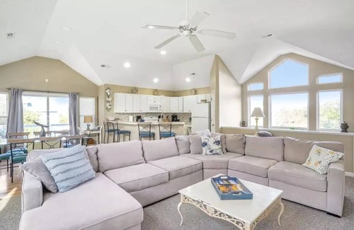 Spacious home perfect for your multi-family beach vacation. Enjoy private hot tub located on top deck and lounge by large in ground pool. Short walk to the sound with pier, gym, tennis and basketball courts, and park and boat ramp access. Beach access with parking lot located less than a mile away. Also less than a 10 minute drive to the 4X4 beach ramp. The home has 2 master bedrooms with king beds. A first floor bedroom with a queen bed and bathroom. A double twin room and a large room with 2 bunk beds perfect for kids. Location is perfect close to grocery stores, shopping, and lots of dining options. Come enjoy your stay at “Suns Up”!