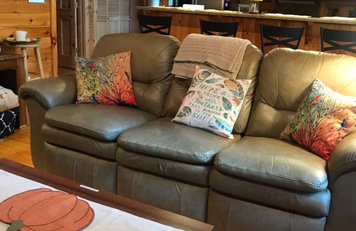 This beautifully wood paneled cabin is nestled in the heart of the blue ridge mountains. It is located close to town and is the perfect retreat for couples or families seeking escape from hot summer days, or simply want to relax! Walking in you will be greeted by beautiful vaulted ceilings and tons of natural light! The living room is equipped with a beautiful fireplace, and a HD TV. In the kitchen you will find top of the line stainless steel appliances perfect for cooking! Both bedrooms have on suite bathrooms, tvs with Roku/Firestick for streaming and plenty of storage. With two queen beds 4 can sleep comfortably. Reasonably priced and tailored to vacationers' desires, Mountain Mystique is the perfect retreat cabin for you!
