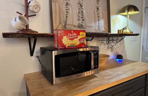 Welcome to our newest addition, Millside Studio apartment.A converted 700 sq ft industrial yet warm space w 12’ ceilings—plenty of room to spread out and relax. Full kitchen, king canopy bed, 65” smart tv, fireplace, beautiful decor, gorgeous roomy bathroom. You will enjoy the privacy of your own space, yet rest knowing we are on-site should you need anything. We do have other guests at our other spaces, so please be respectful of our home and potentially other guests.