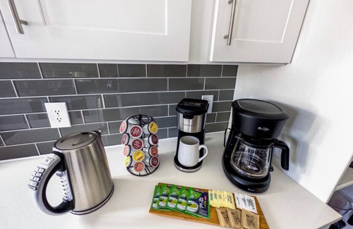 Step inside a space designed effortlessly, with ease and a touch of luxury. The living area lets you sit back with a Smart TV, Retro Video Game Console, Streaming Services, and Cable Channels, perfect for movie nights or gaming sessions. A dedicated dining area is ideal for getting started on work or setting the stage for memorable meals prepared in a kitchen stocked with all the essentials. The bedroom is your personal retreat, complete with a king-sized, 12-inch Memory Foam bed and ceiling fan for complete control. The bathroom, just a step down the hallway, offers a large soaking tub shower fit for a Queen or King.