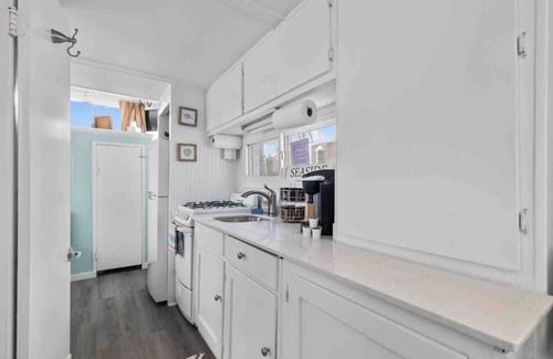 This 40 ft. floating home is located in a beautiful setting harbored on a dock off the Intracoastal Waterway! Drive to nearby towns and visit antique shops and restaurants in Swansboro, NC. Emerald Isle beaches are a 7 min drive! Beautiful Sunsets every night and guaranteed dolphin sightings! Conveniently located close to Crystal Coast Watersports and Ali-Kat Sportfishing Charters! This is a truly unique experience and one you need to mark off your bucket list! 1 Queen Bed/1 Daybed.