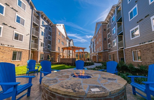WaterWalk is conveniently located in South West Charlotte with easy I-77 and I-485. We are located a few minutes away from Charlotte Douglas International Airport, and Carowinds Amusement Park,. Our all-inclusive 1-Bedroom 1-Bath apartment style suite will make you feel at home – complete with expansive living spaces, private bedrooms, kitchen with full-sized appliances and in-unit washer and dryer. Unpack your suitcase, kick back and enjoy yourself with a cup of java in our spacious lobby or get cozy at our Community Courtyard fire-pit and outdoor grills or get in a workout in our fitness center.