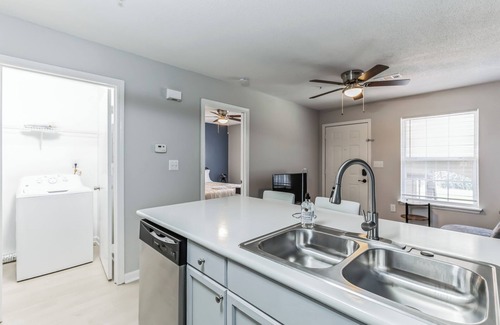 Skip hotels! Unwind in your stylish 1BR/1BA @ Carlson Bay. Spacious living area for post-adventure relaxation. Whip up meals in the fully equipped kitchen . In-unit laundry. Prime location: Fort Bragg, Cross Creek Mall, shops & eats nearby. Nature fix? Cape Fear Valley awaits! Rest easy on plush queen beds. Homey comfort, fraction of hotel cost! Book your Fayetteville escape! #CarlsonBayLuxury