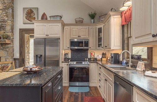 Come relax on the spacious front porch and enjoy the long range mountain views while listening to the soothing sounds of the river below. Step back in time while enjoying all the modern creature comforts. We took down this 125+ year old hand hewn cabin several years ago and have been anxious to be able to recreate what you see here in the Cedar Cliff Cabin! This perfect getaway sits on a 65 acre private estate located in the heart of the Great Smoky Mountains. The setting makes you feel like you are in the back country yet you are minutes from everything this area has to offer. We are only 1 mile from I 40 exit 24 and 25 miles to downtown Asheville and the Biltmore estate. You only need to make a mere 10 minute drive to enjoy all that downtown Waynesville has to offer from fine dining to some of the areas best local breweries.
