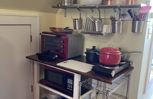This charming studio garage apartment is fully furnished and includes Wi-Fi, use of guest dedicated washer/dryer and utilities. It’s located in a lovely and safe area. Because of our high satisfaction rate, we have many guests who return again and again! The beds and linens are so comfortable, the rainfall shower head is a guest favorite, and you can even choose the exact temperature you want your shower to be. You’ll love it here!