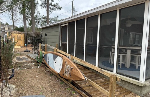 Take it easy at this comfy, cozy cottage three (3) houses back from the lake. There is a peek-a-boo view from the giant screened porch, perfect for sipping coffee or cocktails. Ride the bikes, play in the yard, get on the water with the stand up paddle boards and enjoy the small, quiet, private street pier.