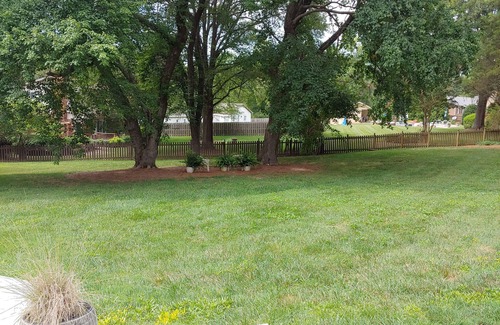 This classic ranch style home is located in the prestigious Sedgefield community, home of Sedgefield Country Club's famous Donald Ross Golf Course where the Wyndham Championship is held each August. Enjoy the privacy offered by the secluded, spacious backyard surrounded by oak and pine trees from the glass enclosed porch and deck. The home offers 3 bedrooms, each with a queen size bed, 2 full baths, 2 living areas each with a wood-burning fireplace and dining room with whimsical walls and a southern farm table. The eat-in kitchen offers all amenities. We ask that renters feel free to leave personal message on the chalkboard kitchen table. This cozy, colorful home is located close to the state of the art Greensboro Aquatic Center and High Point Furniture Market. It is also a central location if you're visiting colleges or attending orientation or graduation at UNC-Greensboro, Guilford College, A&T University, Wake Forest University, Elon University, UNC-Chapel Hill, NC State or Duke University. Other attractions include the minor league Class A baseball team Greensboro Grasshoppers , Carolina Cup bicycle race and the Natural Science Center with their newest attraction the Sciquarium.