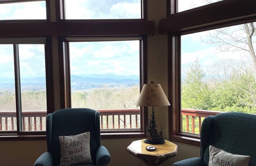 Keywords: Upscale home that is secluded, on the side of a mountain, with a wonderful porch, rockers, and great views and sunsets to the west, and Mt. Pisgah.