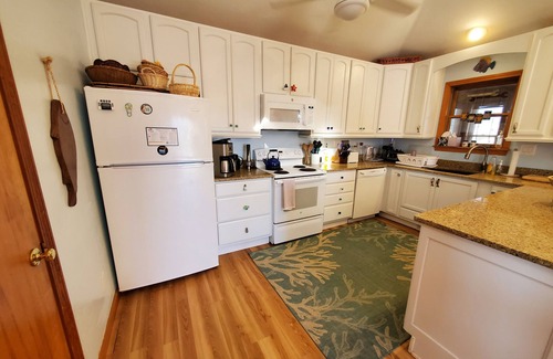 Additional Amenities: Well-stocked Kitchen, Crock Pot, Wine Chiller, Central AC, Heat, High Chair, Ceiling Fans, Books, Games, Puzzles, Iron & Ironing Board, 2 Dogs Welcome with Fees, Short Stays Allowed, No House Phone, Outside Shower, Gas Grill, Beach Cart, Basketball Goal, 5% Military Discount