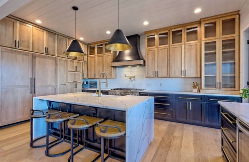- Main Level: The heart of the home! This level features a spacious master suite, an open-concept chef’s kitchen, living, and dining area, plus a half bath and laundry room. Floor-to-ceiling accordion doors open to a massive deck, seamlessly blending indoor and outdoor living. Relax by the outdoor fire coffee table, enjoy meals at the dining table, and fire up the gas grill as you soak in the views.