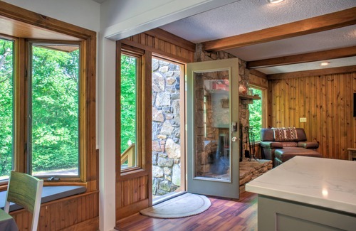 Hop in the pool and celebrate all day in the fenced backyard entertainment zone! The pool patio provides a focal point to gather around for fun in the sun. Surrounding the patio, there's a fire pit, an outdoor dining area, a grassy yard for lawn games, and shade from the trees for hot summer days. In the evening, challenge your buds to a game of darts in the spare room, which can also serve as a bonus sleeping area. The main level primary suite offers a soaking tub to soak away your worries, for a peaceful slumber. Everyone will get their well-deserved beauty rest in one of three upper level bedrooms. Frogmore Estate comes complete with everything you need to have an "un-frog-gettable" vacation! This Asheville vacation rental is located in Leicester and is approximately 20 minutes from downtown Asheville.