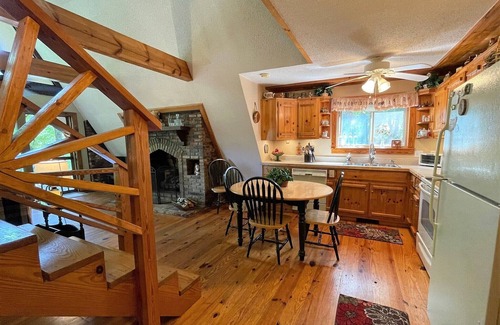 Tucked away in the woods in the gated community of Granny Squirrel surrounded by the Nantahala Forrest is this adorable 3 Bedroom cabin! Granny Squirrel Getaway is the perfect cabin to spend your week in the mountains enjoying nature. Raft down the Nantahala River, fish the many lakes and rivers in the area, take scenic drives and hike the nearby trails all while relaxing at the cabin. The cabin offers a spacious deck with plenty of outdoor seating and gas grill. Step inside and be greeted by the great room with gas log fireplace and flat screen TV for streaming. The large windows allow for catching glimpses of wildlife as they roam through the yard or watching the rain fall as you enjoy a lazy day reading a book. Full kitchen with dining table for four. Main floor offers two guest bedrooms. One bedroom offering two twin beds and the other a Queen bed. Full bathroom just steps away with a stand-up shower. Upstairs is the spacious master bedroom loft with Queen bed and full bathroom. This cabin also offers wifi and a small desk if you must check emails while you are away. Book your stay now for a relaxing mountain vacation!