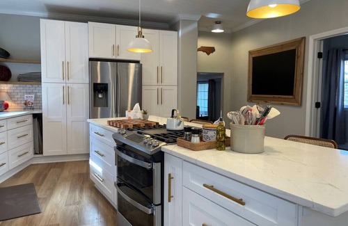 Discover the perfect getaway at our renovated guest house, nestled on a picturesque 35-acre country estate along the Yadkin River in Clemmons, NC. Minutes from Tanglewood, and a quick 15-min drive to Wake Forest, this property offers the best of both worlds. Relax in the living room, where a cozy electric fireplace invites you to unwind, or savor the peaceful surroundings from the charming front patio. Embrace the tranquility of country living while staying close to vibrant city attractions.