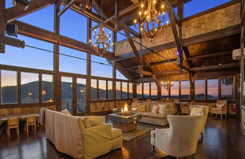 Despite its rural location, this home has advanced technology with uninterrupted wifi and cell phone coverage. The security system included cameras in the house with the option to turn them all off with one switch. Guests can turn the in-house cameras off with the labeled switch on the first floor or have them on to view the monitored areas of the home on the kitchen TV screen. There is a whole home generator in case of a power outage due to winter weather or high winds. The road leading up to the top of the mountain is a maintained gravel road with inclines and switchbacks. There is a plowing service in the winter weather, however, guests should prepare with 4WD and tire chains during winter. There is parking for up to 10-15 cars. A 5-night night minimum stay is required. Pets are not allowed at this property.