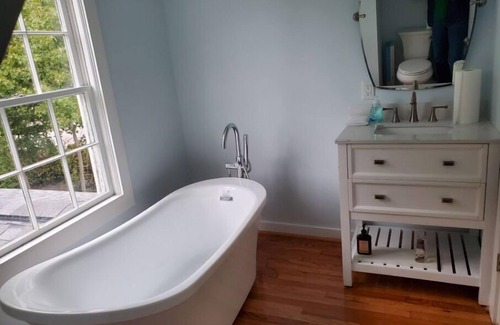 A house with character... Newly renovated, this house offers peace and tranquility in the sunroom, with 2 reclining chairs, open space for reflection, a large soaking tub, night darkening shades, and convenience to North Carolina Central University, siting in the midst of Durham's historic homes.