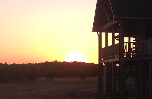 This 4 bedroom plus loft/4 bath log cabin features a wraparound porch, 2 gas fireplaces, fully-equipped kitchen, dining room, great room, loft, finished basement, Cable TV, washer/dryer, indoor and outdoor MP3 compatible music system and tons of outdoor living space. The Baynes Family Farm has 2 fully stocked ponds for fishing, a 2.5 mile hiking trail, a large pavilion with picnic tables and charcoal grill as well as plenty of open space for outdoor camping.