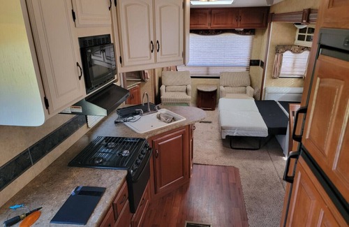 Large Fifth Wheel RV in the peaceful Seaside Cottages Community of Swansboro NC. Three miles to the Crystal Coast Beaches and 5 miles to the lovely historic downtown Swansboro. Endless adventure and excitement to be had in this part of NC. Beaches, Charter fishing, Islands to explore, Kayaking, biking, NC Aquarium, Surf fishing, and amazing food at many of our delicious local restaurants. Have a fun filled day of adventure and then come home to relax in your very own luxury Camper. Short and Long term stays allowed.