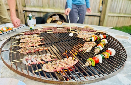 Reconnect with nature and laze under the stars as you enjoy your custom outdoor fire pit. Be a kid again and cook over the open fire via our custom grill grate, or have a hot dog or marshmallow roast! (Complimentary wood bundle and S'mores sticks provided.)