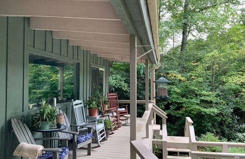 Beautiful one bedroom apartment with full kitchen and island facing the river. Full story windows look out to the pristine South Toe River. Giant rock with great swimming holes, great fishing and kayaking. Newly build apartment is unique with king bed in loft bedroom with huge jacuzzi tub in bathroom. You will love this location and the peaceful, restorative quiet that the river offers. Magnificent sunsets, wildlife and serenity.