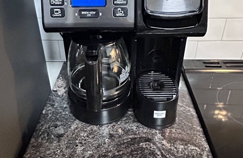 For your convenience, a starter kit of coffee pods, trash bags, toilet paper, and paper towels is provided, along with bath towels, linens and starter toiletry sets.