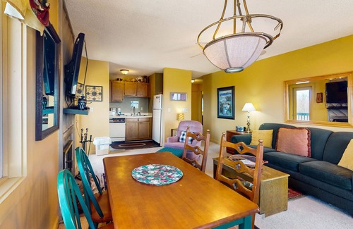 Have an unforgettable mountain escape with top-tier amenities in this cozy and comfortable condo at The Pinnacle Inn Resort. Located in the highest resort community east of the Rockies, this scenic corner unit offers panoramic mountain views—perfect for daytime relaxation or nighttime stargazing with the provided telescope. Inside, guests will find a warm and welcoming space with plenty of entertainment options, including a Blu-Ray player, DVD player, CD player, and radio. Each bedroom features its own TV, along with another in the living room, where you can unwind by the wood-burning fireplace after a day of adventure.