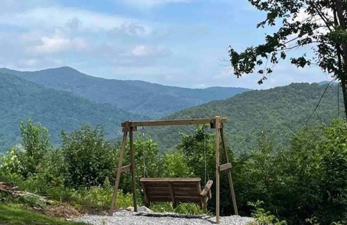 Come for a romantic getaway, Our glamping cabin offers many amenities to make your visit comfortable while enjoying the LONG RANGE mountain views, It is glamping at its best. Relax and enjoy wildlife, and cool mtn air. All enjoyed in the comfort of a rustic , yet comfy glamping cabin. Beautiful reclaimed wood and tin have been used throughout the cabin. The front door came from a cafe I had years ago. The door was painted by a local artist and I am so happy to put it back into use.