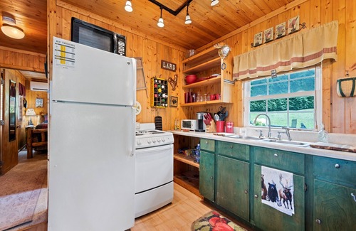 Cabin 1 boasts a spacious king-size bed and a comfortable sleeper sofa in the living room, making it perfect for a romantic getaway or a small family vacation. You'll find entertainment at your fingertips with a TV equipped with internet and a Firestick, ensuring you can stream your favorite shows and movies. The fully equipped kitchen allows you to prepare delicious meals during your stay, and the full bath with a shower offers all the comforts of home.