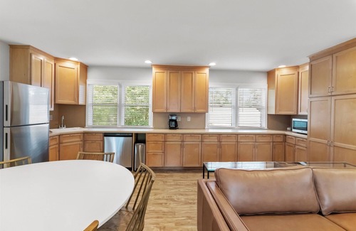 For additional privacy and space, the property includes a detached studio apartment above the garage. This versatile space can serve as a quiet retreat for grandparents, a fun hideaway for teenagers, or a peaceful workspace if needed. The detached garage also serves as a fun-filled game room, featuring ping pong, air hockey, foosball, and cornhole. It’s the perfect place for kids to play and for family tournaments that will have everyone laughing and cheering. For those who like to stay active, the fitness area includes a Peloton bike, yoga mats, and free weights, allowing you to keep up with your workout routine even while on vacation.