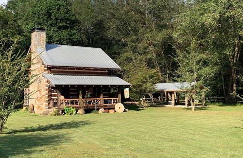 This is truly a property that has to be seen to believe, (Sorry, no children allowed due to not having child safety measures in place.) NCC is a hand built (not manufactured) timber frame cabin located on 3 acres with a flowing creek running through the property. A beautiful 3/4 loft open bedroom. Living room / Kitchen areas downstairs with electric stove. Wood burning fireplace as optional heat source. Mini split heat/air, washer/dryer, 1800s cast iron tub (no shower), NO WIFI, limited cell service unless you have AT&T, Antenna tv and DVD player. Large rock outside fire pit and covered timber shelter. Owners on adjacent property for quick response if guest needs arise. No guests allowed other than paid guests, sorry. (Owners dogs do roam the property, so no other pets allowed.) Daily maid service not provided. Outside smoking permitted. No parties or gatherings allowed. Firewood is supplied free of charge for fires inside and out.