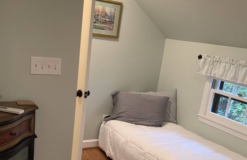 A three room quaint half a New England saltbox cottage in a very private part of Roaring Gap. Living room with fireplace, & sleeper sofa, full kitchen, & small full bath downstairs. Bedroom and half bath upstairs with queen size bed and a twin roll-away bed. Perfect for a couple or a small family. Built in 1964, it was completely renovated in 2018. Two miles from the Blue Ridge Parkway. Perfect getaway. High Meadows resort is next door and Old Beau is across the street. Sparta is nearest town