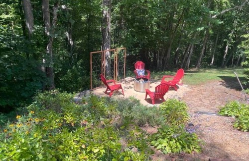 Spacious 2 bedroom and full bathroom with dedicated work space and beautiful views of surrounding woods through large picture window in living room and kitchen with separate dining area. Wonderful gathering area with full size sleeper sofa and smart TVs in bedrooms. Enjoy a cup of coffee and read a book on the private patio while listening to birdsong surrounded by nature.