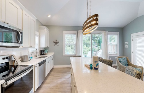 Nestled in the charming coastal town of Corolla, NC, this inviting condo offers a perfect blend of comfort and convenience for your beach getaway. With a well-lit path to the entrance and disabled parking spot, accessibility is a top priority. The condo features a king bed, ensuring a restful night\'s sleep, along with a range of amenities including a washer/dryer, coffee maker, dishwasher, and central AC to make you feel right at home.