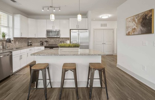 This bright apartment includes a full kitchen, full-sized washer & dryer, oversized closets, free parking, high-speed WIFI, and a spacious balcony. Our guests will have access to the luxury building amenities including a resort-inspired pool, outdoor grilling area & fire pit, fitness center, entertainment lounge, and dog park.