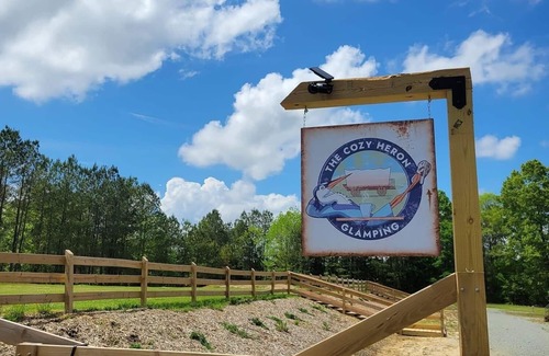 The Cozy Heron Glamping resort is part of the Cape Fear River Adventures river activity center. The outfitter becomes very busy in the warmer months. You can expect to see lots of folks around the river if your stay occurs May-October. The Cozy Heron portion of the property has designated private areas for its guests, including the bath house.