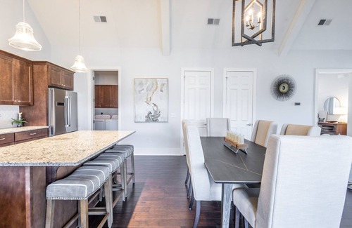 Welcome to Saddle Notch Mountain Villa 5! This stunning townhome is designed with families in mind. With 4 bedrooms, 3.5 bathrooms, and plenty of outdoor gathering space, there is ample room for everyone to relax and enjoy all that Bear Lake Reserve has to offer. This home is not pet friendly. Upstairs on the main floor you will find the open kitchen and living room that lead to a large screened back porch with fantastic mountain nature views. The living room has a 65-inch TV and gas fireplace, and the porch features a full outdoor dining table and seating area perfect for morning coffee or afternoon happy hours! The laundry room is located off the kitchen and includes a washer, dryer and an additional standalone ice maker. The main level primary suite has a king size bed, private dual-vanity bath and an added workspace with desk, monitor and keyboard. Downstairs you will find 3 additional bedrooms, 2 bathrooms and a game room. The downstairs king room has a private bath and direct access to the lower back porch with a custom-built oversized bed swing. That porch is also accessible from the queen room which shares the hallway bathroom with the bunk room. These queen-over-queen bunk beds are suitable for young cubs and sturdy enough for adults. The downstairs game room offers a dual basketball shooting game, foosball table and a 55-inch TV to keep everyone entertained! For additional sleeping options, 2 CordaRoy's bean bag chairs that convert to full size beds are available. This home also has access to the shared Saddle Notch cul-de-sac fire pit. The itinerary for a Bear Lake Reserve vacation is endless and Villa 5 is a short walk away from all the action at the Lake Club and a quick drive to golf, tennis and pickleball. No matter the time of year a getaway is in order, the temperature, surroundings, and the people are bound to make it an unforgettable experience!