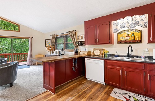 When you arrive, you'll find plenty of parking for 3-4 vehicles. As you walk through the front door, this inviting cabin welcomes you in and makes you feel right at home.