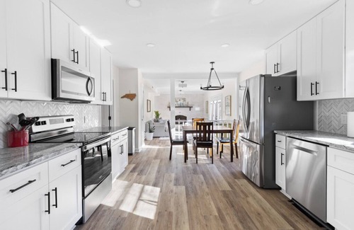 Discover tranquility and convenience at Midtown Oasis, a newly renovated, four-bedroom furnished house in Raleigh that has been beautifully decorated. Enjoy a spacious layout, cozy bedrooms featuring new memory foam luxury mattresses, a fully equipped large kitchen, a relaxing living room, and a versatile dining area. The property also boasts a fenced-in yard with a back patio, Wi-Fi, a flat-screen TV, modern appliances, and more.