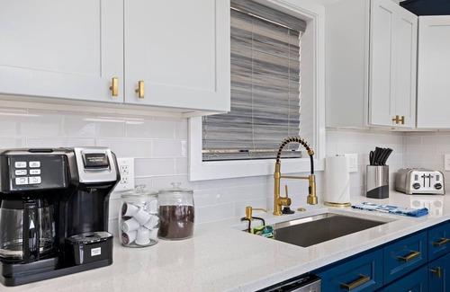 Insta Pot, Blender, Waffle Maker, Toaster, Coffee Station with K-Cups and Organic Coffee provided for your convenience. Crockery and Silverware for full meal service for up to 10 people. Separate utensils for the kiddos.