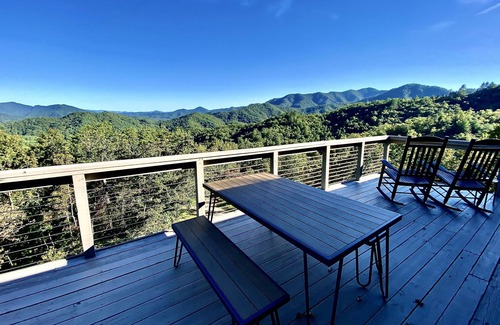 On arrival, you are sure to appreciate the level parking area and only 3 stairs to access the entire cabin. Relax on one of the Rocking Chairs on the Covered entry porch while you wait for your guests to arrive, or connect to the upgraded and even faster WiFi* and send your friends photos of the Amazing Cabin and Views.