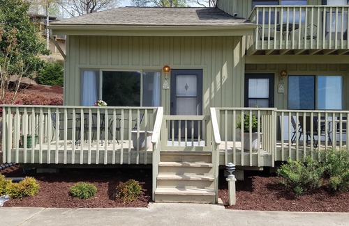 WELCOME TO LAKE LURE!! Our Happy Place is located inside the gates of Rumbling Bald Resort. It's the perfect place for a family vacation or golf groups. Enjoy the direct views of Bald Mountain and watch the golfers as they play along the 3rd fairway of the Bald Mountain Golf Course. Sip your coffee or cocktail on the front porch while enjoying your sunrise and sunset. The condo is newly renovated and decorated. You will have access to the resort amenities - which includes indoor/outdoor pools and lazy river, walking distance to a private beach, restaurants, fitness center and spa, tennis and basketball courts, mini-golf, hiking trails, and MUCH MORE!