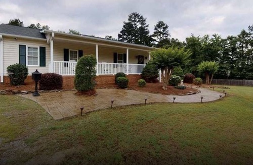 We are right outside the city limits of High Point. Our home sits on 2 acres on a private drive. The patio and front porch make it very nice to enjoy your morning coffee as the sun comes up and a glass of wine while the sun goes down! You will find that most areas of shopping and restaurants are with 4-5 miles! High Point University is exactly 4 miles..Downtown High Point is 3 miles from our Home.