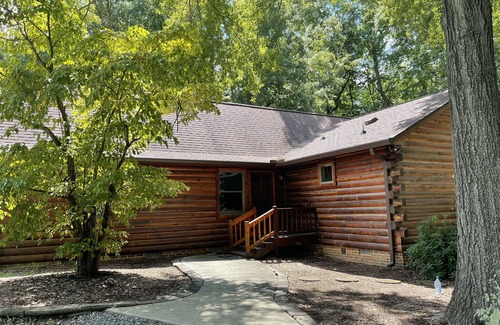 This cabin housed the offices of my father (Carolina Fibres, Federal Waste Paper and Triad Paper Recycling) and my husband (Roger Fisher, CPA) for years! We hope to continue as a business and offer expert hospitality in our great town of Greensboro!