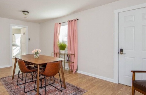 This cozy, one story home features a small living room, kitchen, and dining room. The kitchen includes full sized appliances and modern, front loading washer and dryer units. You will find two bedrooms, one with a full size bed and a second bedroom featuring 2 twin sized beds. The household bathroom includes a tub/shower combo and includes body wash, shampoo and conditioner, makeup remover wipes and fresh linens for all guests.
