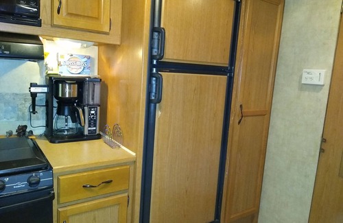 we have a beautiful 31 foot RV that sits on our property in a country setting but still within minutes of shopping & restaurant's.it has a fireplace,we also provide wifi,Netflix prime and Hulu included in price of rental we also welcome your pets .our property is a wildlife refuge so you watch the birds and rabbits play. the RV is stocked with everything you will need to feel at home pots,pans,dishes,iron & ironing board DVD player, a specialty coffee maker that makes almost any kind of coffee you want, we loan out grills & outside furniture free of charge, we even have a place to build a bon fire with a few hours notice with an adult over 21 present