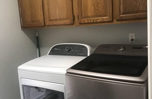 Kitchen-Newly remodeled with plenty of cabinet space. Granite countertops with island and dining table. The kitchen is fully stocked with everything you will need for your stay. Pots/pans/ utensils/ dinnerware/ glasses coffee maker and Keurig/ stainless steel appliances (New refrigerator, stove and dishwasher). Kitchen has a walk in pantry with plenty of space to store your food.