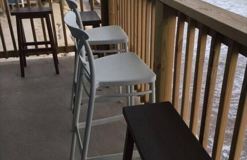 Breathtaking sunrises, maybe a passing shrimp boat or even dolphins feeding while enjoying your morning coffee. This one bedroom condo is located as close to the ocean as you can get on North Topsail Beach. At high tide, the beach is not accessible in front of the building. Enjoy the waves and view from your private balcony. Plenty of beach during low tide. The condo is keyless entry so you don`t have to worry about losing a key on the beach. There is a small Tiki Bar across the street. This place has 2 flat screen Smart TV`s, a dvd player, games, movies, books and a fully equipped kitchen; just bring the groceries. Great place for 1, 2 or a family. It offers tennis equipment, corn hole bags and a basketball for the multipurpose court. Other items can be used on the beach including chairs and umbrella. All linens, towels and paper products provided.